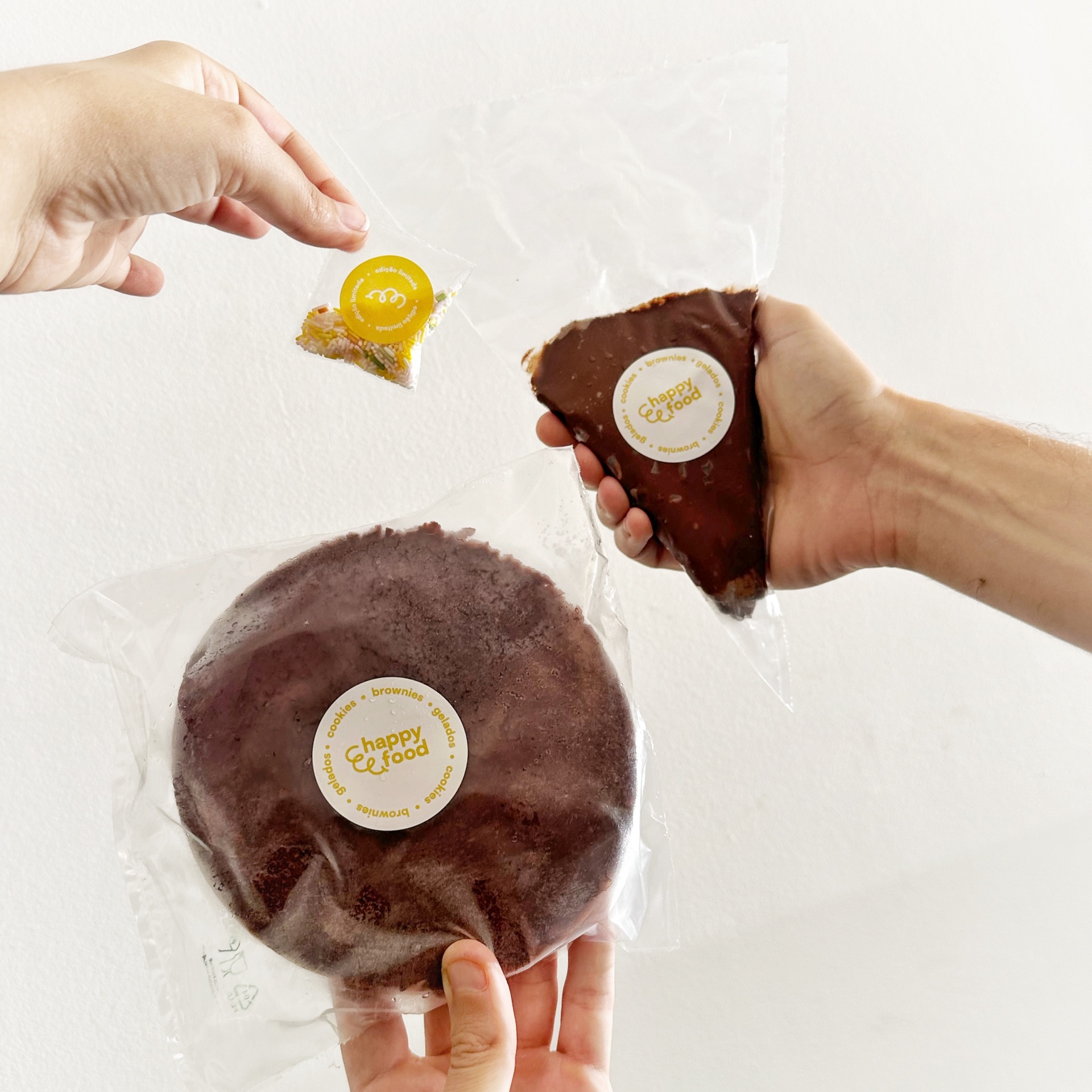 Ingredientes: brigadeiro (leite de aveia* sem glúten (água, aveia sem glúten 11,5%, óleo de girassol, sal marinho), chocolate negro (macarrão de cacau, açúcar, cacau magro em pó, emulsionante: lecitina de soja, aroma natural de baunilha), água, açúcar amarelo, farinha de arroz, óleo de coco, puré de beterraba, amido de milho, semente de linhaça, cacau em pó, fermento químico (contém sulfitos), goma xantana, ácido, E129, extrato de baunilha, sorbato de potássio.