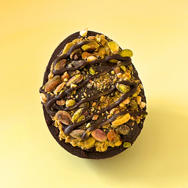 É um ovo pensado para quem aprecia chocolate mais intenso e o sabor delicado do pistachio, numa versão indulgente, mas harmoniosa.